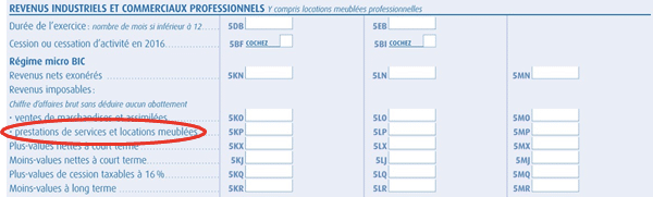 IMPORTANT : Un créateur qui exerce une activité qui correspond à de la prestation de service ainsi que de la vente de marchandise devra ventiler/ répartir son chiffre d’affaires entre les cases 5KO ou 5LO (pour la vente de marchandise) et 5KP ou 5LP (pour la prestation de service).