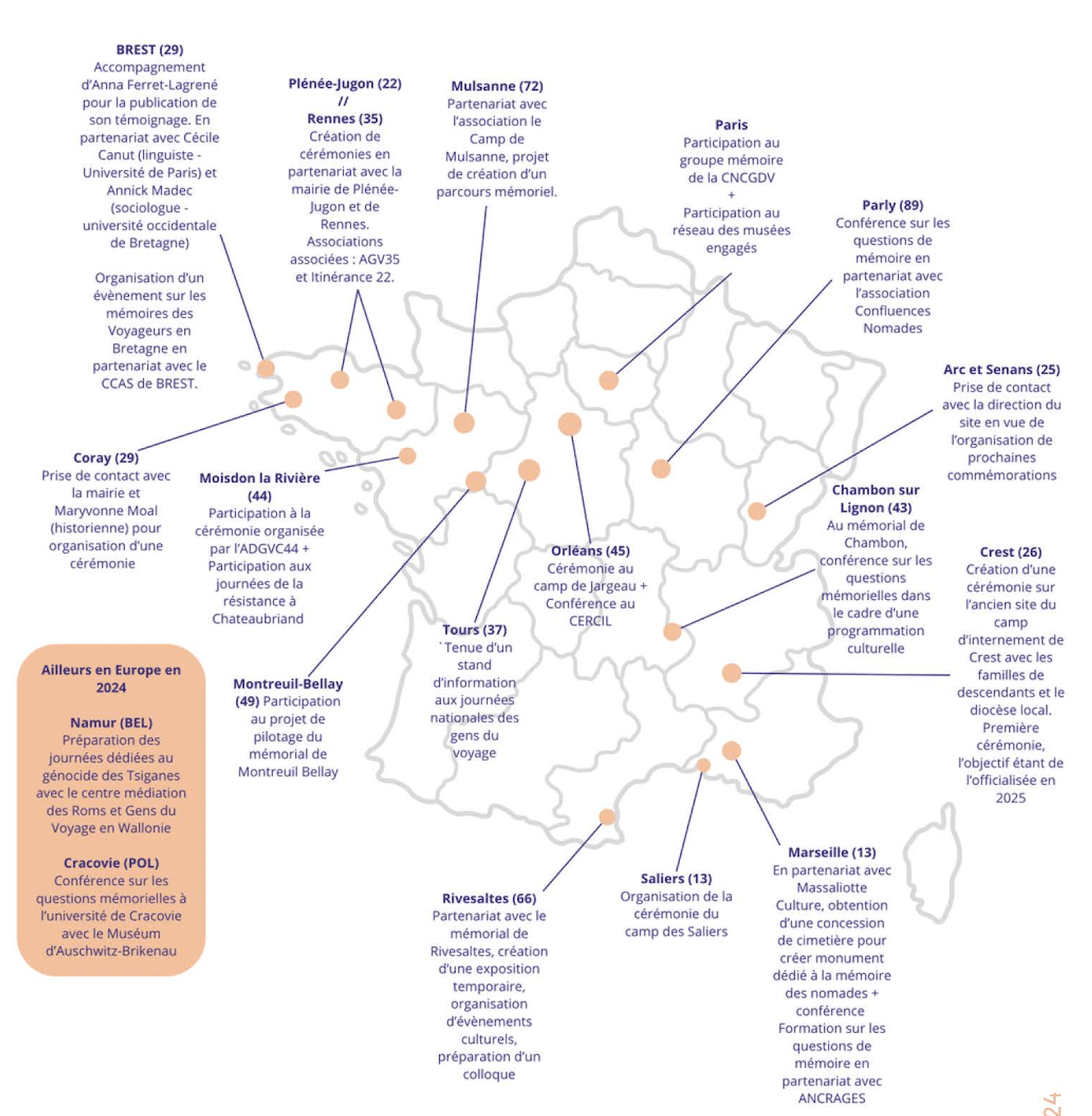 Organisation des Assises nationales de la mémoire en 2024 avec le Mémorial de Rivesaltes, l’ODCI et le Mémorial des Nomades de France.